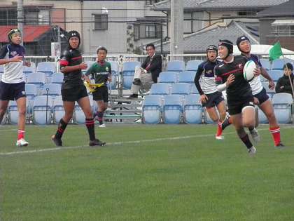 【祝優勝】ラグビー部 近畿大会 公開日 2018/11/19 更新日 2018/11/19 学校の様子 11月17日(土)近畿大会決勝 花園ラグビー場第2グランド VS大阪市立相生中学校 66−0(前半40−0 後半26−0) キックオフ後すぐにノーホイッスルトライを奪い波に乗ります。 試合を通じFW・BK一体となった展開ラグビーを繰り広げ圧勝しました。 4年ぶり2回目の近畿制覇、単独では初の優勝となりました。 ラグビー部の皆さん、関係者の皆さんおめでとうございます。