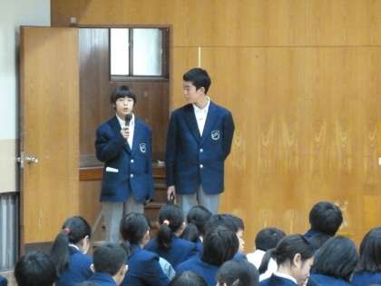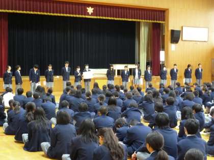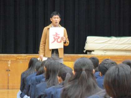 学年主任の郡山先生からは、「今年の漢字」で締めくくりのお話。