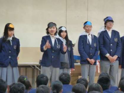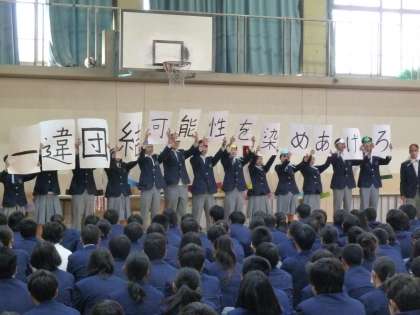終業式 公開日 2018/12/21 更新日 2018/12/21 学校の様子 2学期が終わりました。 まず、新生徒会から新しいスローガンが発表されました。 「違」の字が違うことにも意味があったのですね。