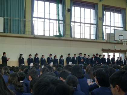 キリッと澄んだ空気の中で、3学期の始業式が行われました。