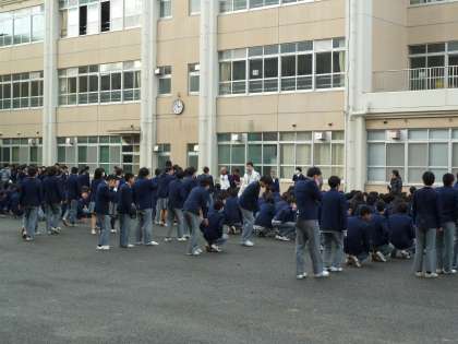 放送が流れて、全校生徒が中庭に集まるまでにかかった時間は3分59秒。
