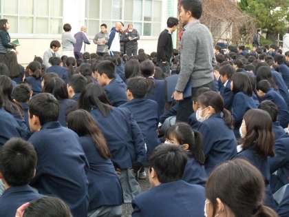マグニチュード7.5の地震発生を想定して、6時間目に避難訓練が行われました。