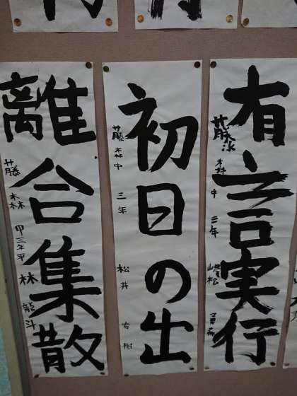 書き初め展(11組) 公開日 2019/01/22 更新日 2019/01/22 学校の様子 先週末に行われた書き初め展では、11組からも入選者がありました。 おめでとうございます。 とめ・はね・はらいが丁寧な文字を見ていると、見ている方の背筋も伸びる気がしますね。