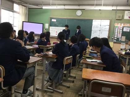 各学級の修学旅行委員が平和学習の一環として授業を行いました。