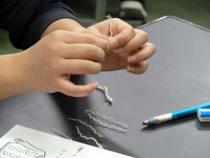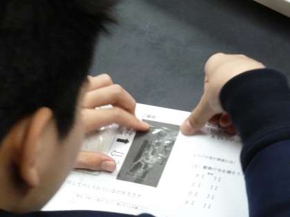 2,3組は羊毛の観察。