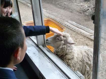 おやつのキャベツをあげながら、羊の歯の生え方の観察もしました。