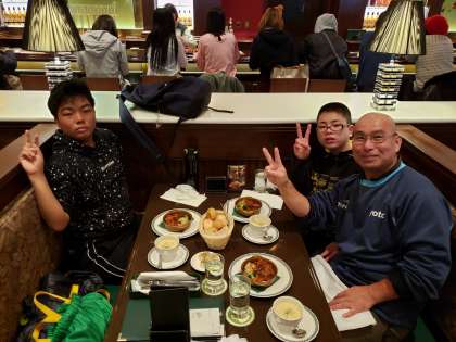 午前中、雨の中、ミニオンズに乗り、ランチ☀️🍴食べてからお土産の買い物学習して記念写真撮影しました。
