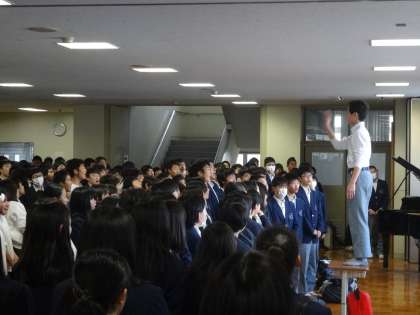 生徒会本部が中心となって,明日の3年生を送る会で歌う全校合唱『unlimited』の練習会を行いました。