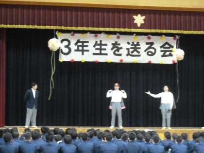 3年生を送る会(4) 公開日 2019/03/13 更新日 2019/03/13 学校の様子 今日のために、各委員会や生徒会本部、吹奏楽部のみなさんも頑張ってくれました。 「誰かのために時間をかけて何かを準備すること」の大切さを、在校生一同実感できた時間だったと思います。