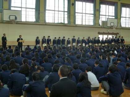修了式(1) 公開日 2019/03/20 更新日 2019/03/20 学校の様子 1,2年生だけしかいないと、ガランとした体育館に感じられます。 今日もたくさんの表彰がありました。 ラグビー部、放送部、柔道部、陸上部、 生き方探究チャレンジ体験のポップ、美術部、 京都新聞書き初め展などなど… 数研とJICAからは学校賞もいただきました。 この頑張りは来年につなげたいですね。 表彰されたみなさん、おめでとうございます!