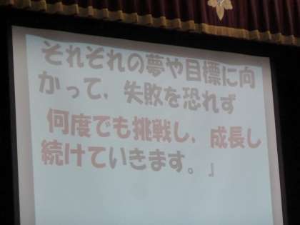 校長先生からは、先日行われた卒業式での答辞の言葉を引用しながらのお話がありました。