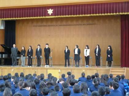 離任式の様子 公開日 2019/03/29 更新日 2019/03/29 学校の様子 在校生、卒業生、PTAのみなさん、地域のみなさん…たくさんの方々の見送りの中、この春異動される先生方の離任式が行われました。 今度どこかで会うときに、一回りも二回りも成長した姿を見せられるように、4月からまた頑張りたいですね。 先生方、本当にお世話になりました。 少ししんみりとしながらも、笑顔にあふれたあたたかい離任式となりました。