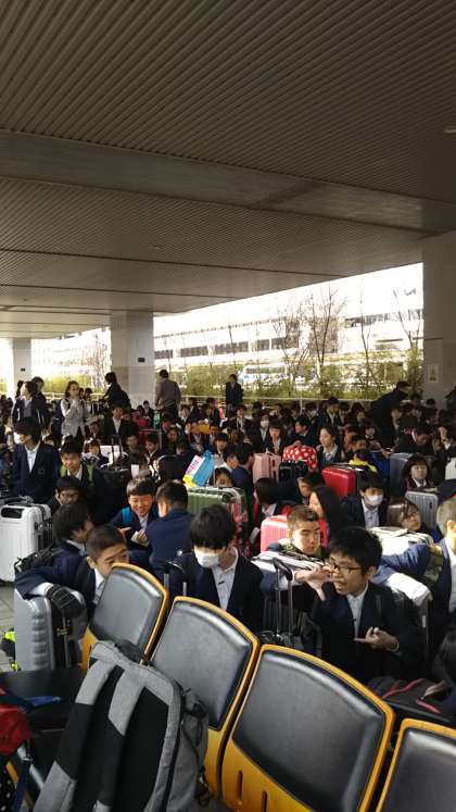 先程、伊丹空港に無事に到着しました。 遅れもなく、全員元気です。