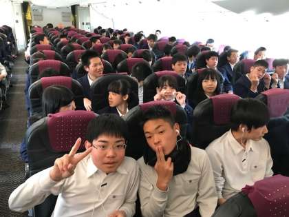 飛行機に乗り,沖縄に向けて出発します。