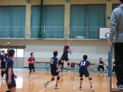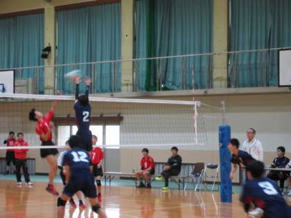 (※紺色のユニフォームが、本校男子バレー部です)
