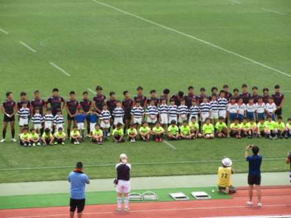 5月26日(日),「春季総合体育大会 ラグビーフットボール」競技の部決勝が,西京極陸上競技場で行われました。30度を超える真夏日の中,西陵中学校との熱戦が展開されました。
