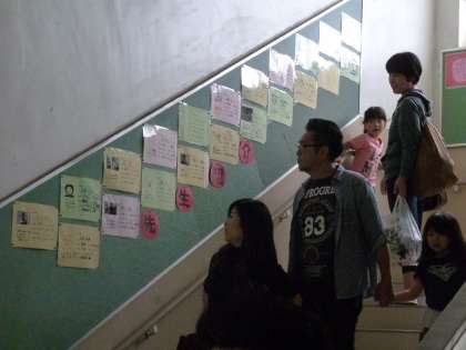 せっかく来ていただく保護者に、生徒の皆さんのがんばりをしっかり見ていただこうと、各学年いろいろな掲示を工夫しています。