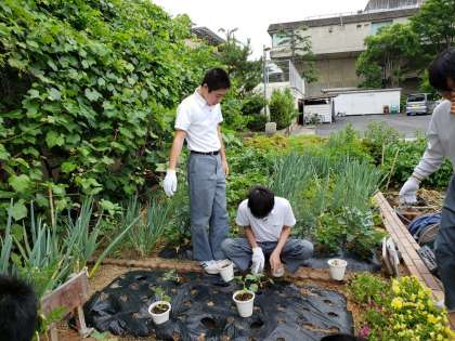 農園で玉ねぎの収穫とメロンの苗を植えました。また,調理実習で楽しく調理して,おいしくいただきたいと思います。