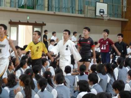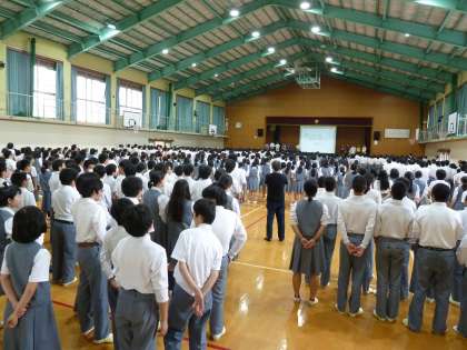 生徒会の発案で、今年は部活動ごとに集まって校歌を歌うことになりました。