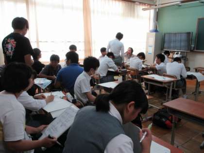 今週の月曜から実施しました各学年ごとの「サマースクール」も本日で終了となります。夏休みの宿題を自主的に黙々と取り組んでいる人,わからないところを積極的に友人や先生に質問している人など,どの教室も熱心に学習する姿が見られました。34日間の夏休みの12日が終わろうとしています。これからも家庭で,計画的に学習を進めていってください。体調には十分に気を付け,充実した毎日を過ごしていってください。
