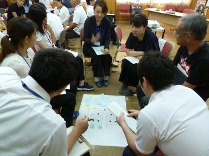 学校閉鎖日明けの午前中、小中5校の先生が集まって、合同研修会を行いました。