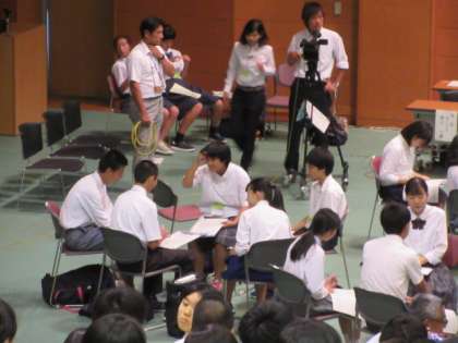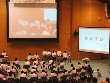 京都市8支部からの生徒会活動の取組の報告や,グループ協議・全体協議など活発な話し合いや交流が行われました。各支部からの報告会では,自分の学校に活用できるものを持ち帰り今後の自校生徒会活動の参考にしようと,真剣なまなざしで聞き入っている姿に感心しました。また全体協議会では,大勢の中,本校から参加している2名の生徒も臆することなく積極的に発言し,やる気と頼もしさを感じました。各校のリーダーが一堂に会したサミットだけあり,その発言内容から大きな刺激をもらって帰ることが出来たと思います。