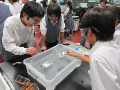 8月27日(火),午後からは1年生が科学センターに行きました。2時間続けての「実験室学習」です。科学センターの先生方の工夫を凝らした実験に,みんな集中して見入っていました。様々な角度からの実験・観察を通して,より科学に対する興味・関心を高めることが出来たと思います。