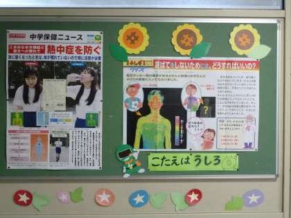明日は身体測定です 公開日 2019/08/27 更新日 2019/08/27 お知らせ 明日は午前中に身体測定が行われます。 体操服の半ズボンを忘れないように持ってきてください。 保健室は既に明日の準備が完了しています。 今日は少し気温が落ち着きましたが、まだまだ暑さがぶり返すとも言われています。 保健室のドアには毎日熱中症指数が表示されています。 また、季節に応じたなるほどトピックスが満載です。 測定のついでにぜひ読んでみてくださいね。
