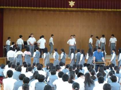 合唱コンクールリハーサル(1) 公開日 2019/09/05 更新日 2019/09/05 学校の様子 2〜4限目に、学年ごとに合唱コンクールのリハーサルが始まっています。 初回の今日は、入場の仕方や舞台での並び方の確認など、動作確認が主のようです。 まだまだ気温の高い日が続きますが、校内の植物はすでに秋の様相を呈しています。 9月11日まであと6日。 どのクラスも実りの一日を迎えたいですね。