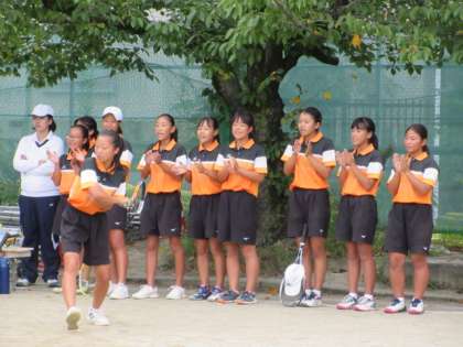 9月22日(日),本校テニスコートにて,ソフトテニスの新人戦団体ブロック予選が行われました。4校(藤森・二条・洛水・栗陵)の総当たり戦で、そのうち3校が市内決勝トーナメントに進出できます。その結果,