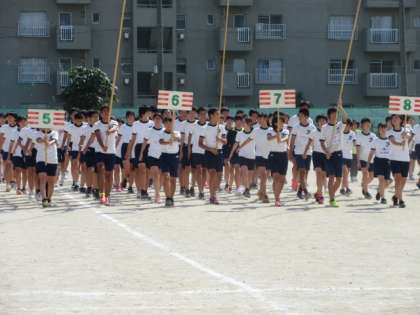 『藤中祭・体育の部』が迫ってきました。学年ごとの練習もこれまで積み上げてきましたが,本日は午後から全校での予行練習を行いました。日差しの強い,大変暑い中での予行練習でしたが,開・閉会式,入場行進,全体召集,学年団体競技等の練習を行いました。
