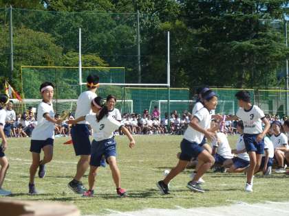 体育の部5(3学年競技「3.1.5.0リレー」) 公開日 2019/10/09 更新日 2019/10/09 学校の様子 「3.1.5.0」は「最高」と読むそうです。 クラス全員でつなぐバトンで、グラウンドに3年生の固いきずなの輪が見えるようでした。