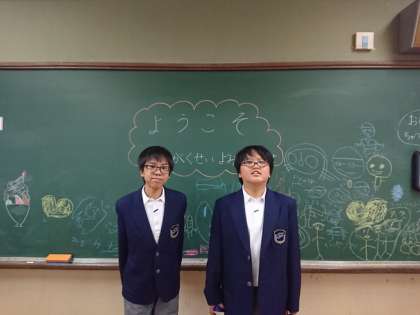 教室に入ると、黒板に歓迎の言葉があり、小学生みんなで書いてくれていました。