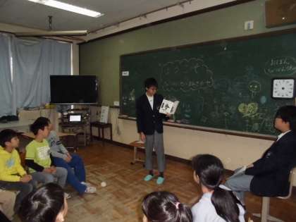 読み聞かせは、1年生を中心に進めました。いつもよりお兄さんらしく見え、さすが中学生らしくなってきたなあと、小学校の先生に褒められました。