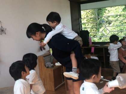 一緒に遊んだり,一緒に話を聞いたりとても楽しんで過ごしています。