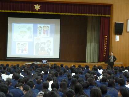 警察署の方を講師にお迎えして、今日は「非行防止教室」が行われています。