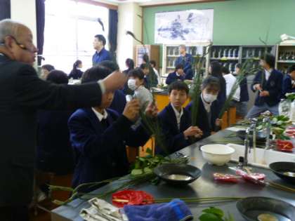 華道いけばな体験(2年生) 公開日 2019/11/27 更新日 2019/11/27 2年生 今日は2年生の全クラスが生け花の体験学習中です。 お家元のお話を聞いた後、みんなおそるおそる生け始めています。 どうなることやら…楽しみですね。 体験後は、実際に生けたお花を今日は各家庭に持ち帰ります。 学校で生けた様子を思い出しながら、お家で生けられるように、とのこと。 今日は2年生がそれぞれの家庭を花で彩ります。 ご家族のみなさん、楽しみにお待ちください!