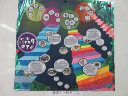 本校PTAの文化教養委員会の皆様が,何回も学校に足を運んでいただいて,全勢力を傾け作成した力作です。その素晴らしい出来栄えに,大変感動いたしました。“新しい時代にふさわしいPTA活動”へと,一歩ずつ階段を駆け上がっていく様子が見事に描かれていました。本当にご苦労様でした。あらためまして本校PTAの皆様の,常に献身的に学校を支えていただいておりますことに,敬意を表し深く感謝申し上げます。