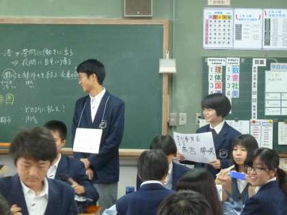 名前を知ってもらおうキャンペーン(生徒会) 公開日 2019/12/18 更新日 2019/12/18 学校の様子 新生徒会本部役員が、自分たちの名前をまず覚えてもらおうという取組を月曜日から始めました。 その名も「名前を知ってもらおうキャンペーン」! 昼食時間の5分間を使って、各クラスを回っています。 学校をよりよくするために、先頭に立つ人の名前を覚えることは最初の一歩に当たります。 次に廊下で会ったときには、ぜひ声をかけてあげてください。
