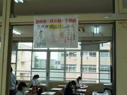 校内の目立つところには、感染防止対策のポスターがあちこちに貼られています。