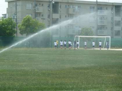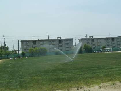 ※写真は、芝生のグラウンドでの体育。