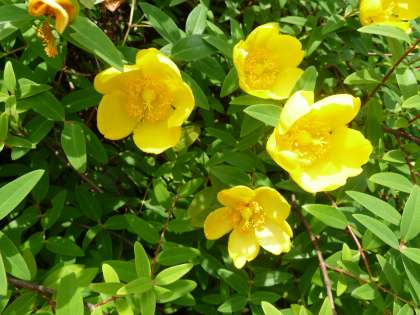 校内のあちこちで花盛りの金糸梅(キンシバイ)