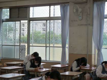 だんだん暑さが厳しくなってきましたが、クーラーをつけても部屋を閉め切った状態にしないよう、どの教室もドアや窓を必ず少し開けるように徹底しています。