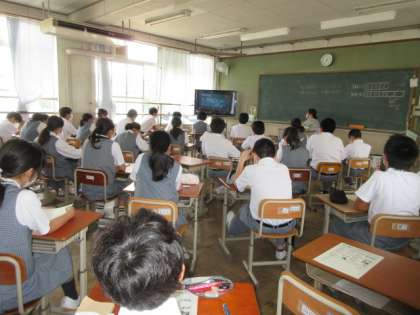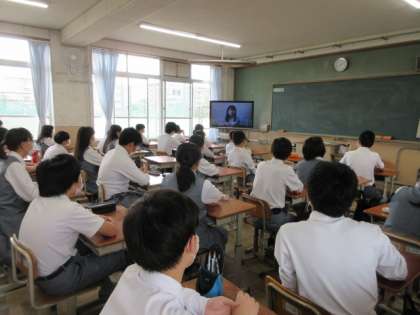 (※一番上の写真は放送室より生中継の様子,下の2枚は各クラスでの