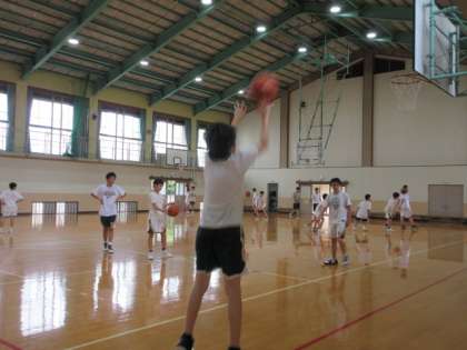 朝に降っていた雨も上がり,幾分蒸し暑さは残るものの,グラウンドではサッカー部が,体育館では男子バスケットボール部が練習していました。