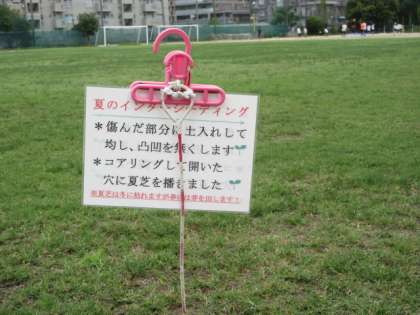(※写真一番下は,先週の土曜日に夏芝に更新した養生中の芝の様子