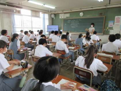 2年生は,在日コリアンの歴史的背景と,生活していく上での課題(差別)とその解決に向けてを考えていました。どの教室もPPTを使い,わかりやすく担任の先生方が説明されていました。