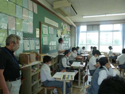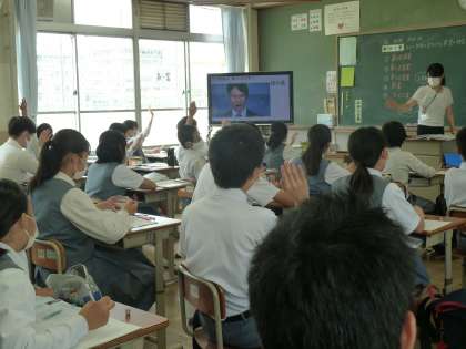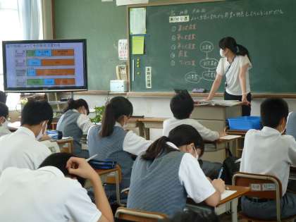 若い先生の授業を、教育委員会から先生方が見に来られました。