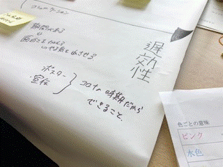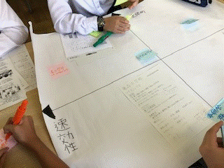 取組の中から気になったものを付箋に書き出し、グループ毎に分類している様子です。