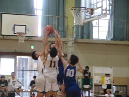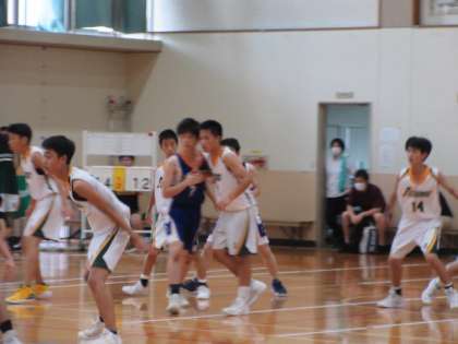 と,手に汗握る大接戦となりました。勝敗の行方は最後の5分となりました。相手チームのリバウンドが少し勝り,トータル21−31の惜敗となりました。相手との点差が開き始めたとき,自分を,そしてチームを奮い立たせて頑張る姿に胸が熱くなりました。皆さん,大変お疲れさまでした。特に3年生の皆さん,部員数が大変多く,チームを1つにまとめることが難しかったと思いますが,3年間頑張ってきたことは今後の人生の中でも必ず活きてきます。前を向いて進んでいってください。
